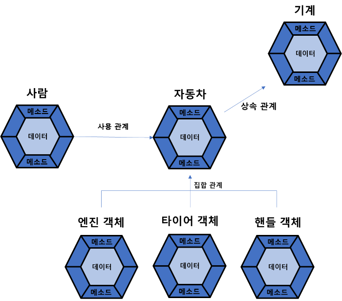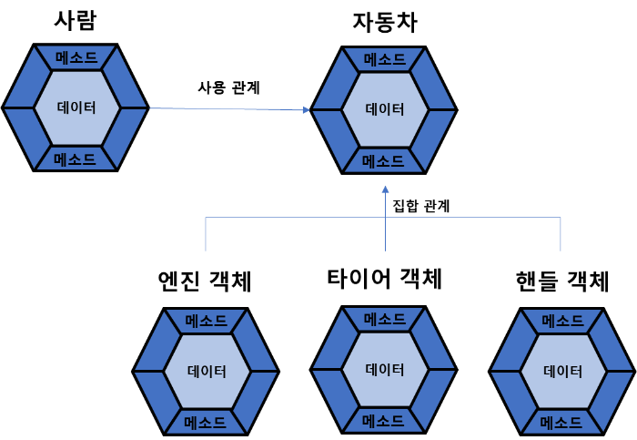 - 사용 관계 : 객체 간의 상호 작용을 말한다.