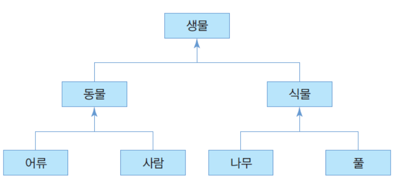 - 상속 관계 : 상위(부모) 객체를 기반으로 하위(자식) 객체를 생성하는 관계를 말한다.