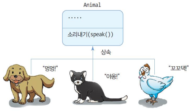 다형성 : 같은 이름의 메소드가 클래스나 객체에 따라 다르게 동작하도록 구현