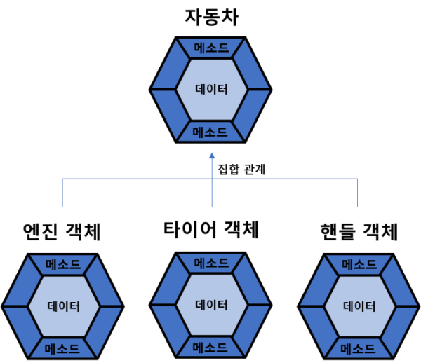 자동차와 이 부품들은 집합의 관계라고 볼 수 있다.