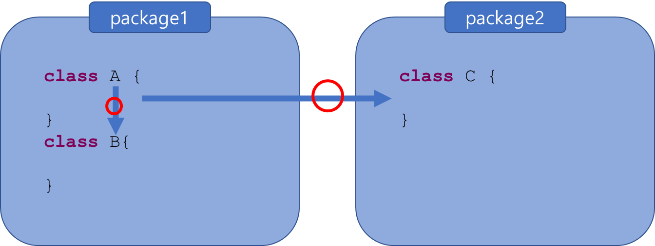 같은 패키지에서는 아무런 제한 없이 사용할 수 있지만 다른 패키지에서는 사용할 수 없다.