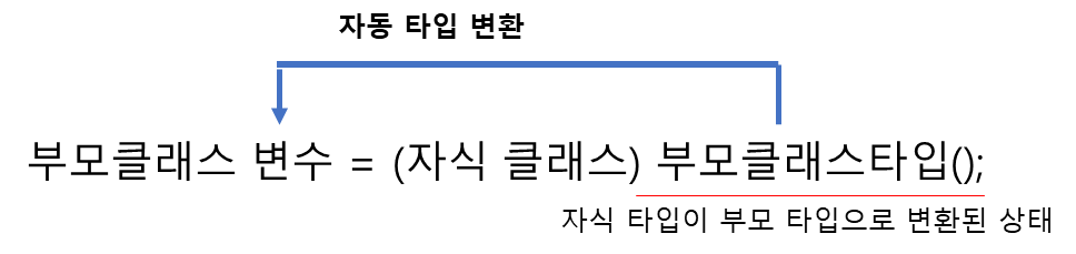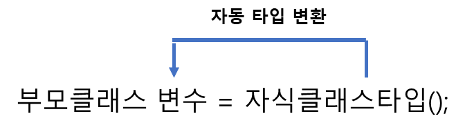 자식 타입은 부모타입으로 자동 타입 변환이 가능하다.