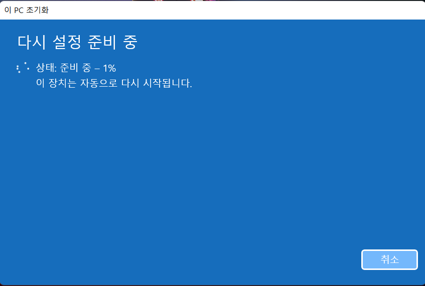 위와 같은 화면이 나타나며 준비가 완료되면 PC가 자동으로 재시작됩니다!