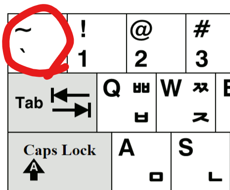 키보드 자판에 물결표시에 있는 키를 사용한다.