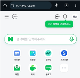 기본 브라우저에서 네이버, 다음과 같은 포털 사이트를 스마트폰으로 접속하면 url 주소가 m.naver.com 또는 m.daum.net이라고 표시되는 것을 볼 수 있다. 이것이 모바일 웹이다.