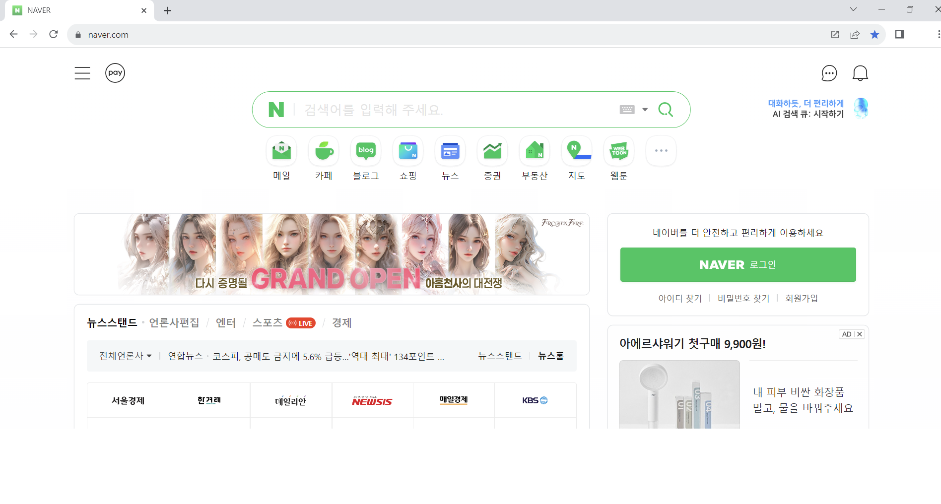 pc에서 네이버에 접속하면 pc에 맞는 화면이 나타나지만