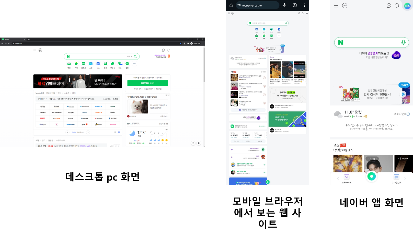 예시로 브라우저에서 네이버를 접속한 것과 네이버 앱을 실행해서 사용할 때를 비교하면 네이버 앱에서만 실행할 수 있는 혹은 네이버 앱에서 더 깔끔하게 작동되는 기능이 있다.