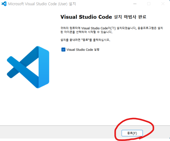 [ VSCODE 설치 ] - 8. 종료 후 자동 실행됩니다.