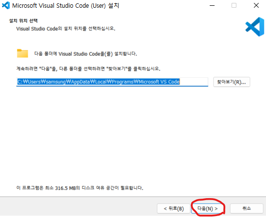 3. 설치 경로 확인 후 다음 클릭