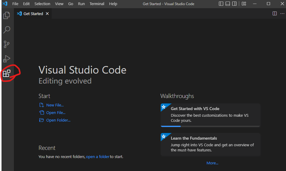 2. 왼쪽 메뉴에서 가장 아래에 있는 Extensions 클릭( 또는 단축키 Ctrl + Shift + X )