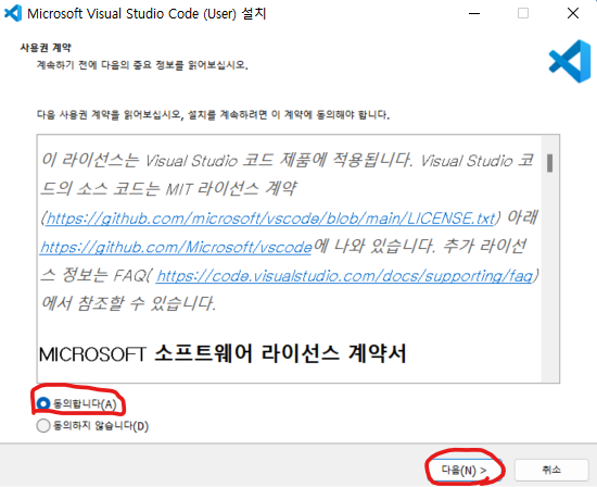 2. 설치 파일 클릭 후 동의합니다. -> 다음 클릭