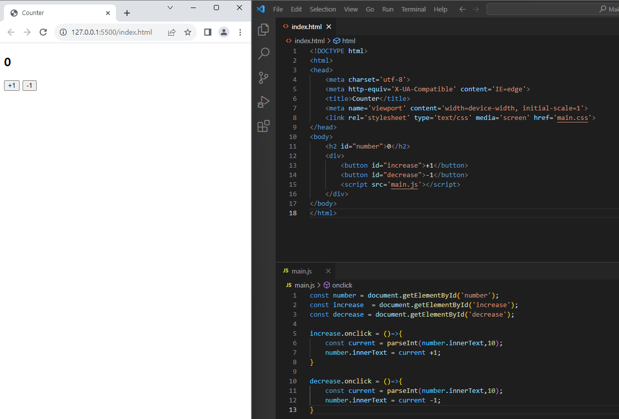 .onclick 이벤트를 통해 이벤트가 발생하면 변화를 주었다.