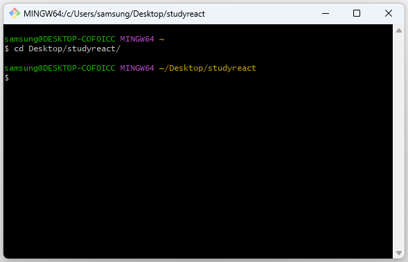 깃 배쉬에서 만들어진 프로젝트 디렉터리로 이동한다.