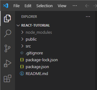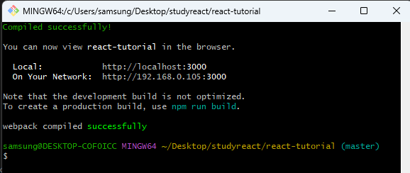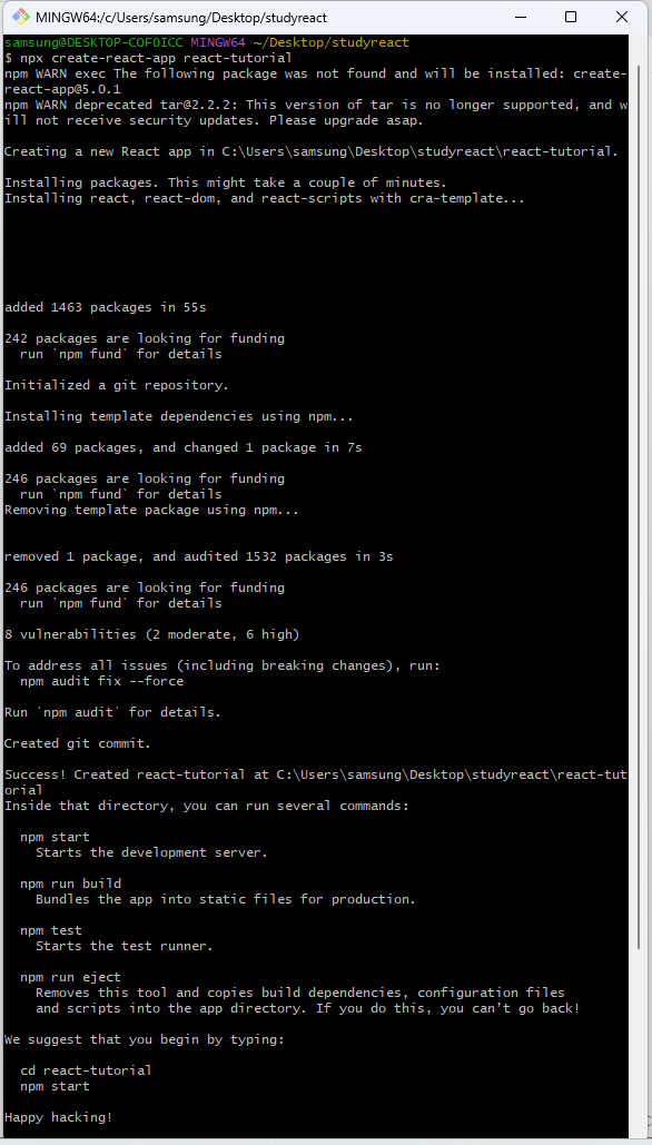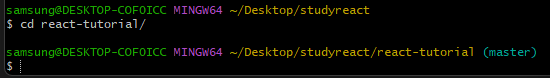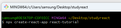 명령어를 입력 후 기다리면 react-tutorial이라는 디렉터리가 만들어진다.
