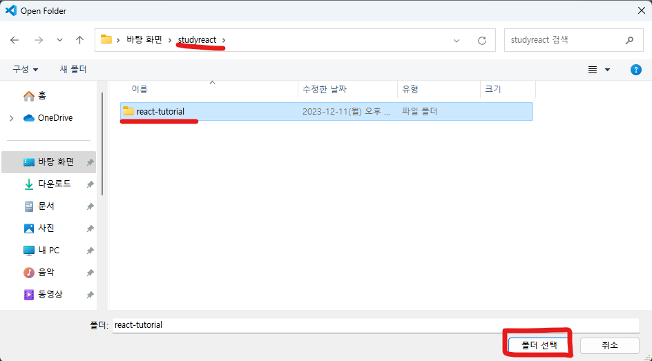 만들어둔 디렉터리를 선택 후 폴더 선택 버튼 클릭