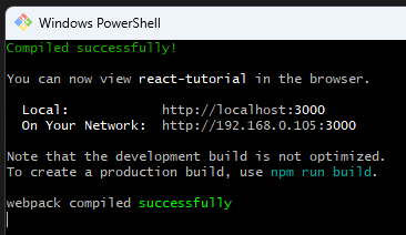 리액트 서버가 실행되는 것을 볼 수 있다.