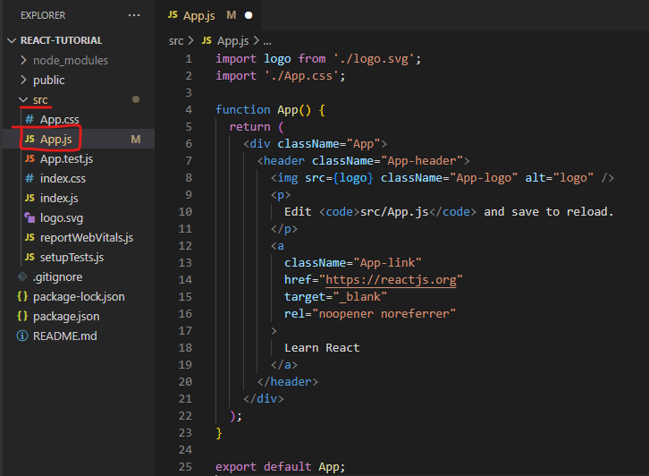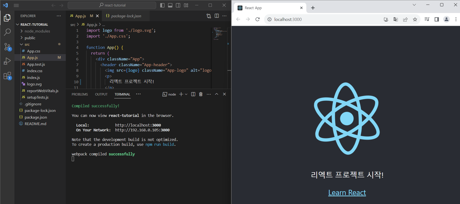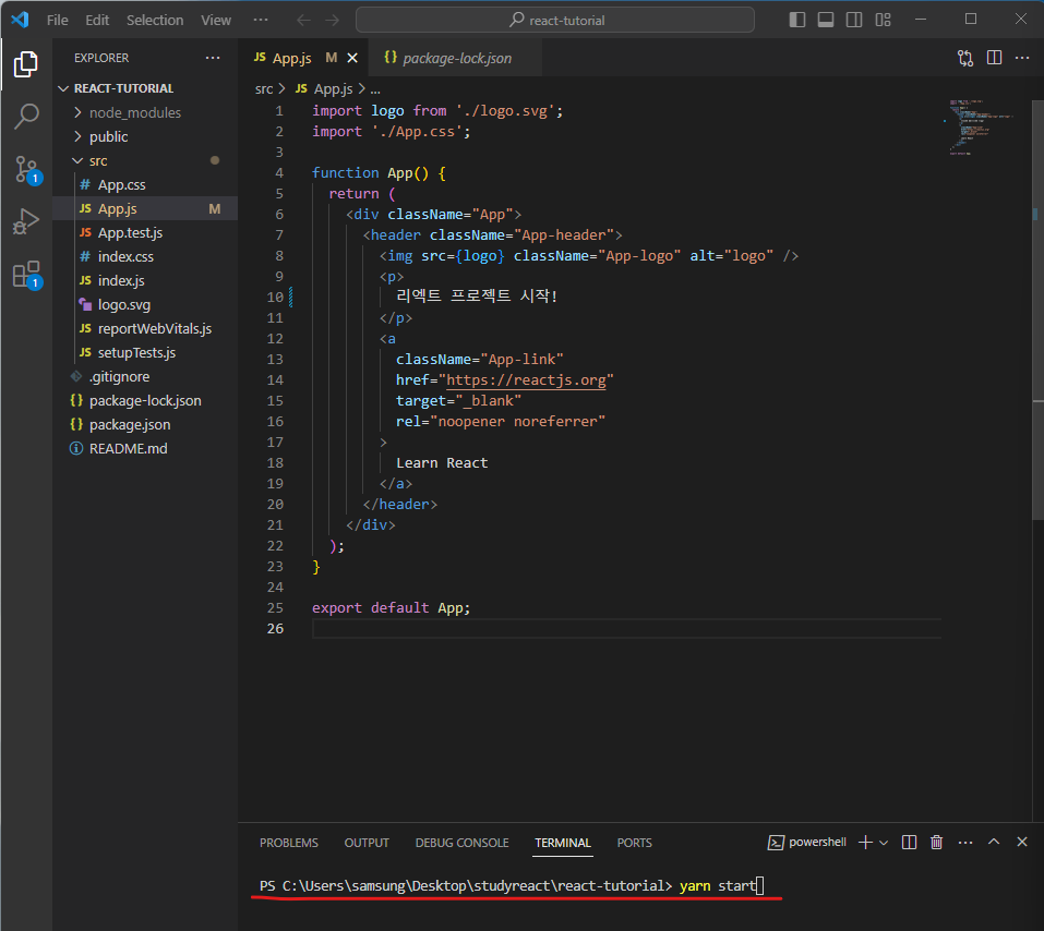 저는 프로젝트 이름을 react-tutorial로 했습니다.