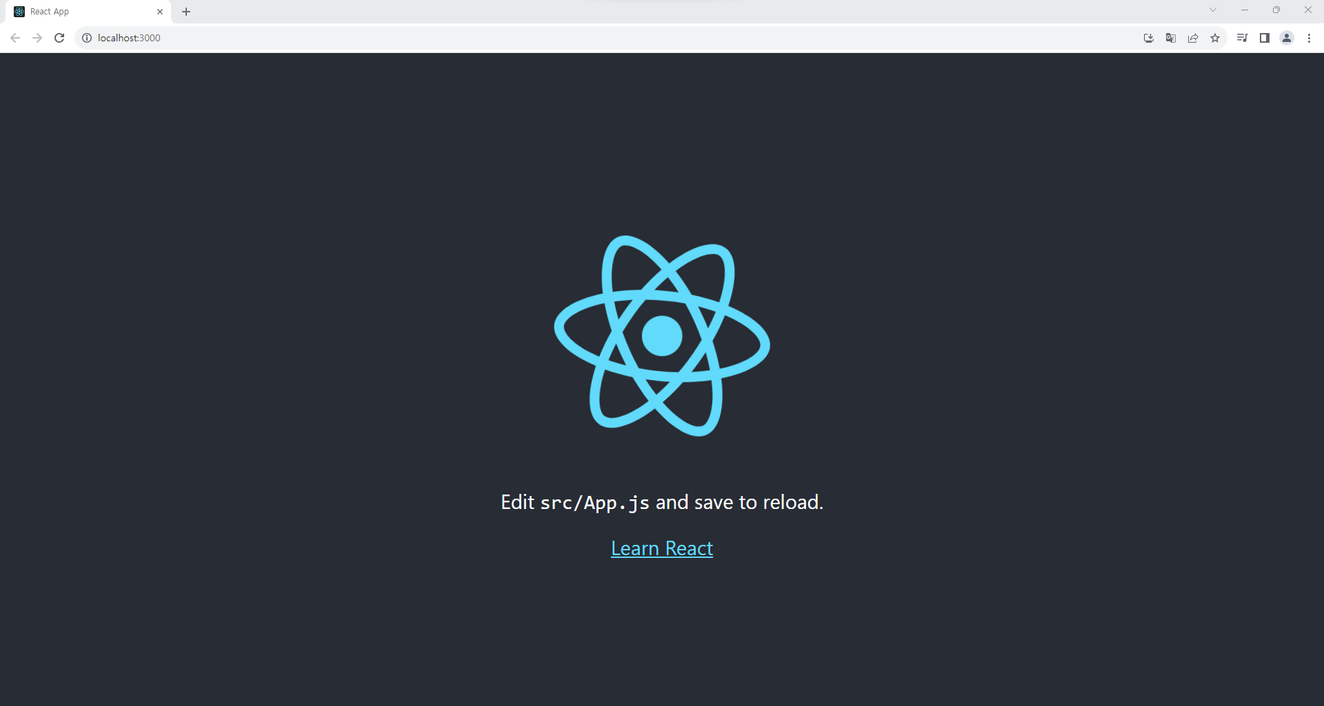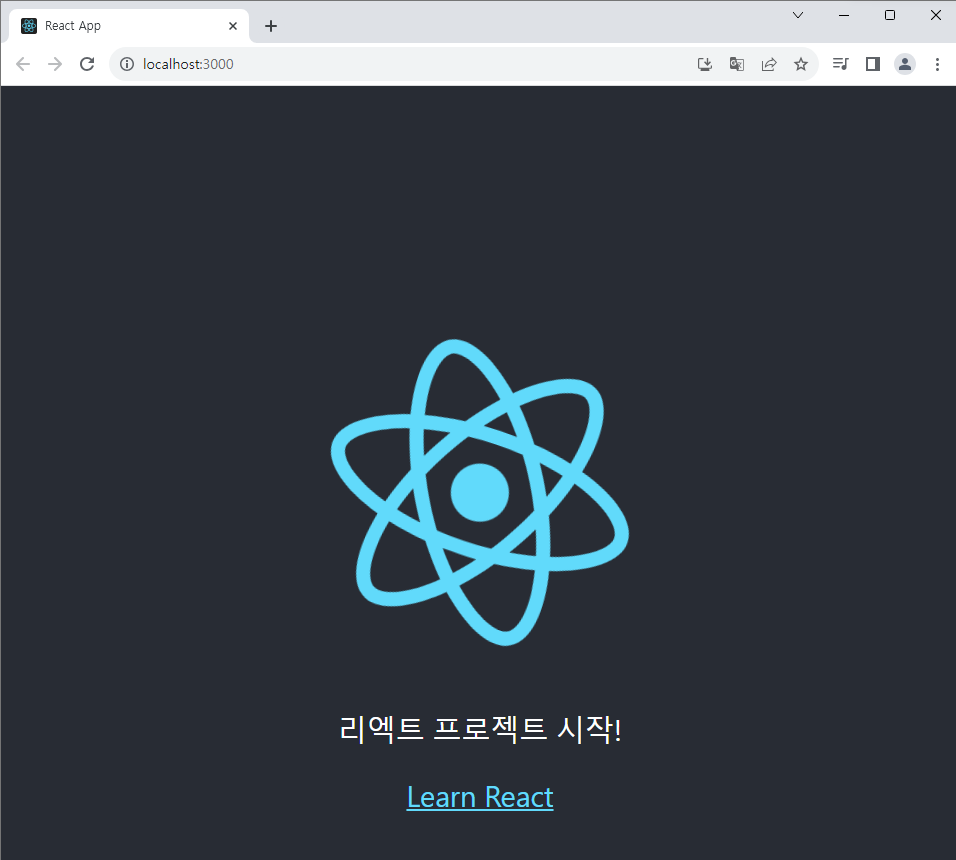 리액트 로고가 회전하는 브라우저 화면을 볼 수 있다.