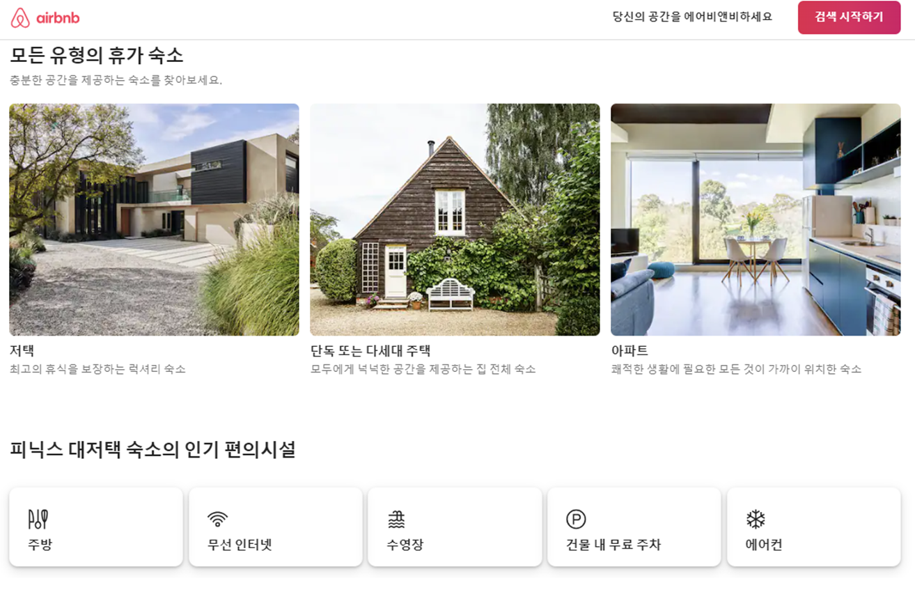 에어비앤비 홈페이지다.
