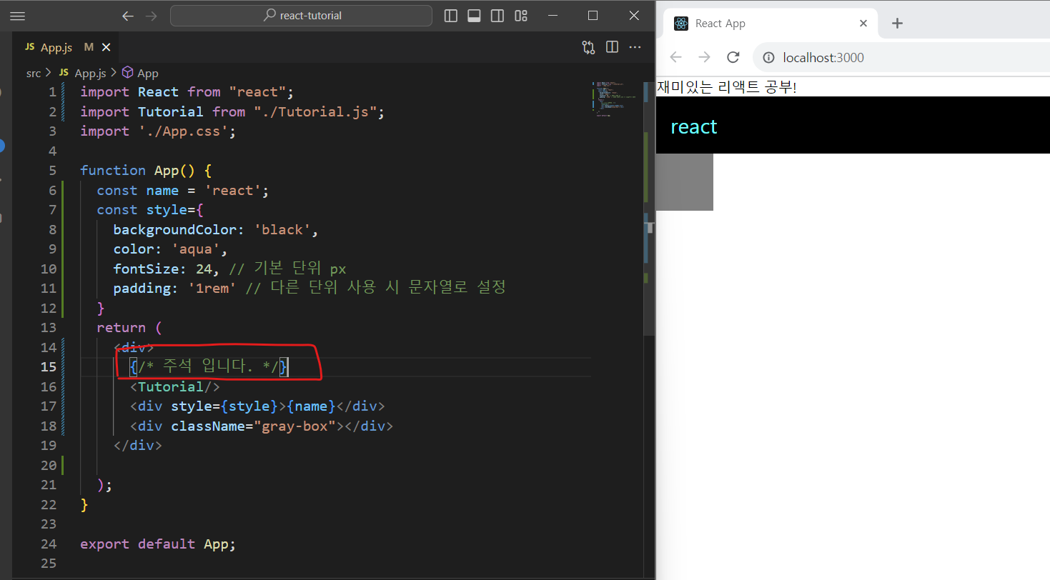 만약 JSX에서 주석을 사용한다면 브라우저 화면에 나타난다.