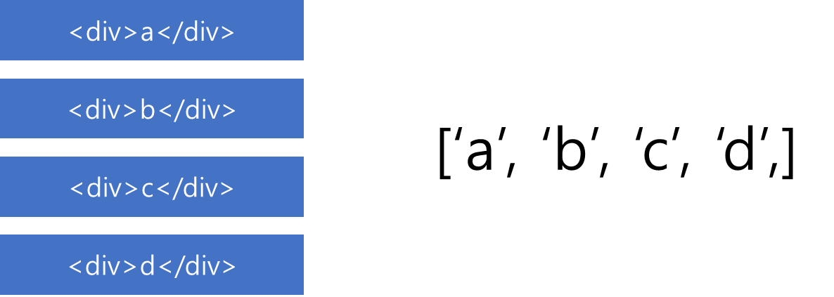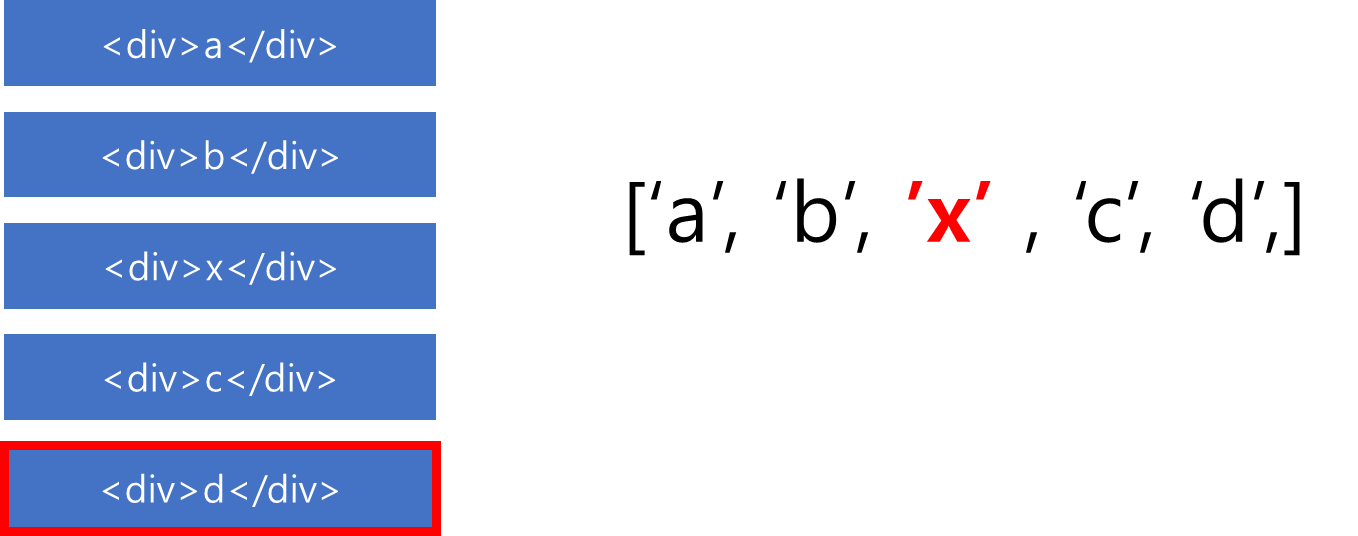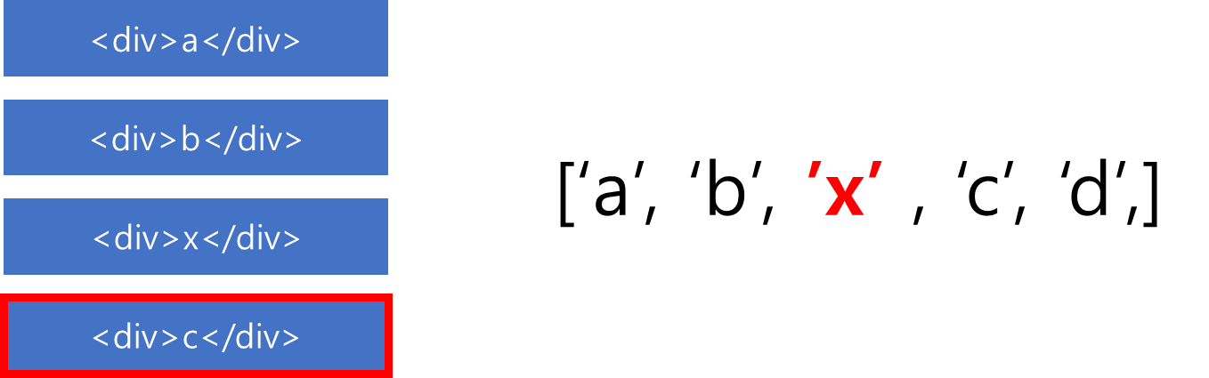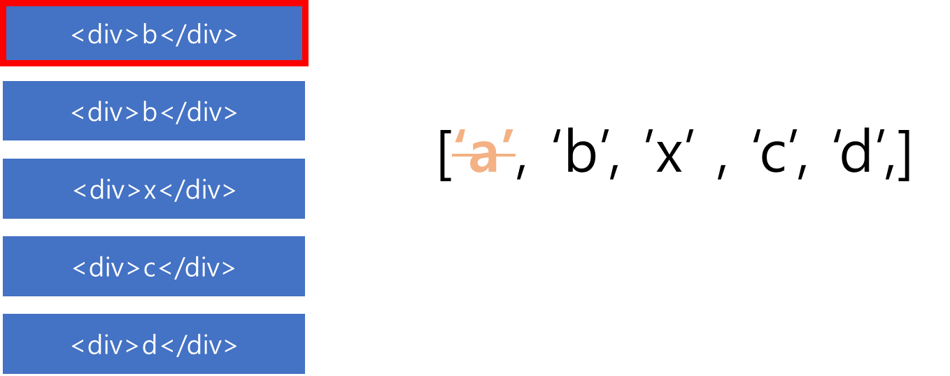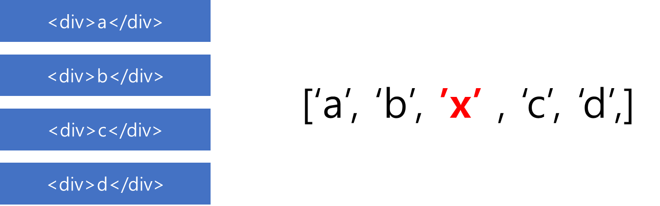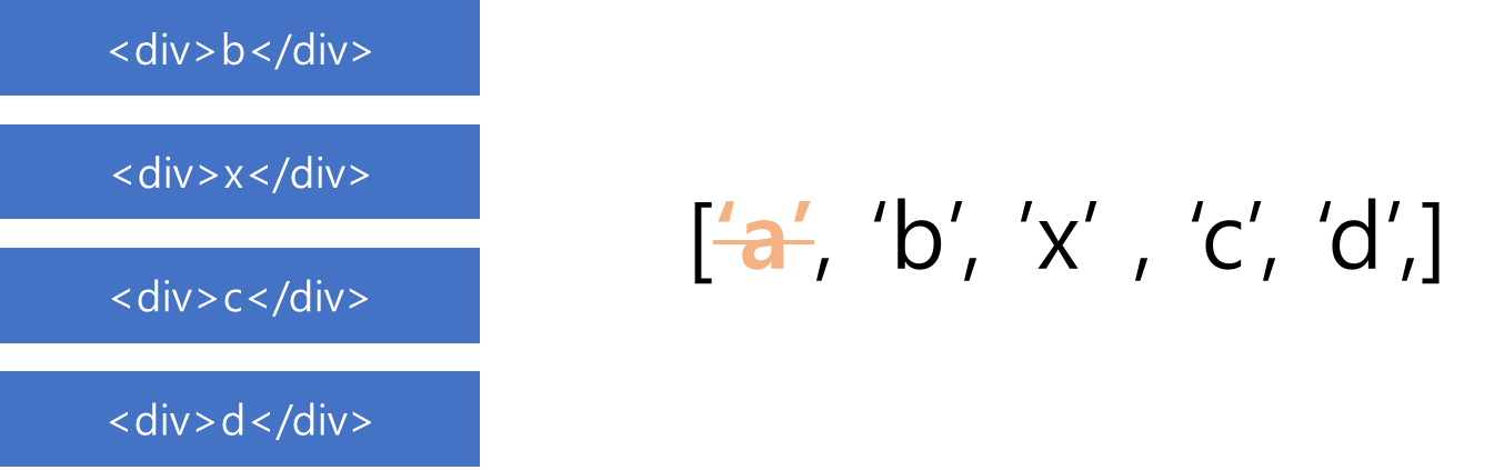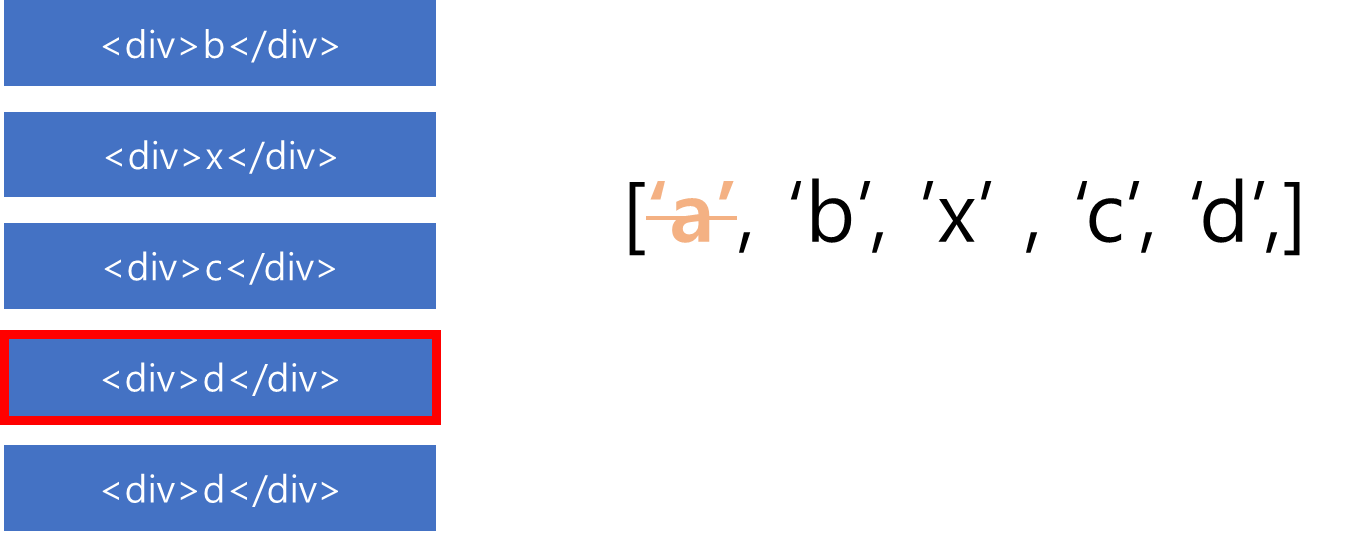 만약 배열 array에서 a를 삭제한다면 <div>a</div>만 없어지고 나머지는 그대로 있을 거라고 생각한다.