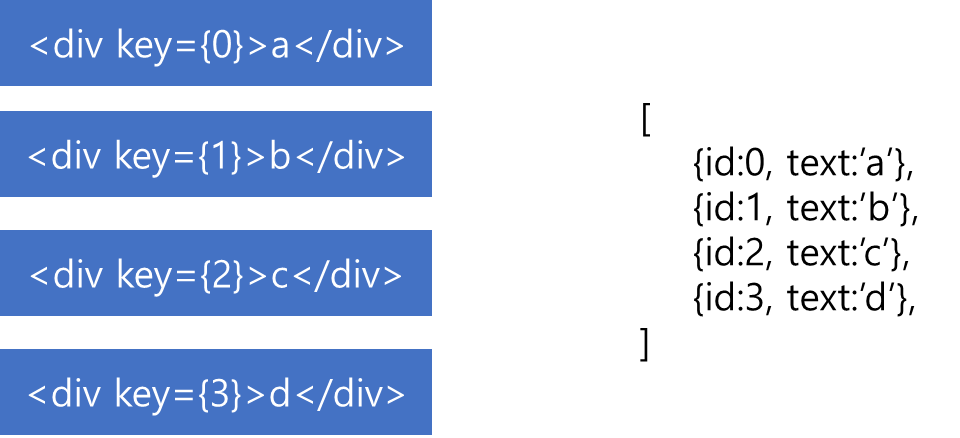 - 배열을 렌더링 하게 된다면 key를 설정해야 효율적으로 렌더링을 할 수 있다.