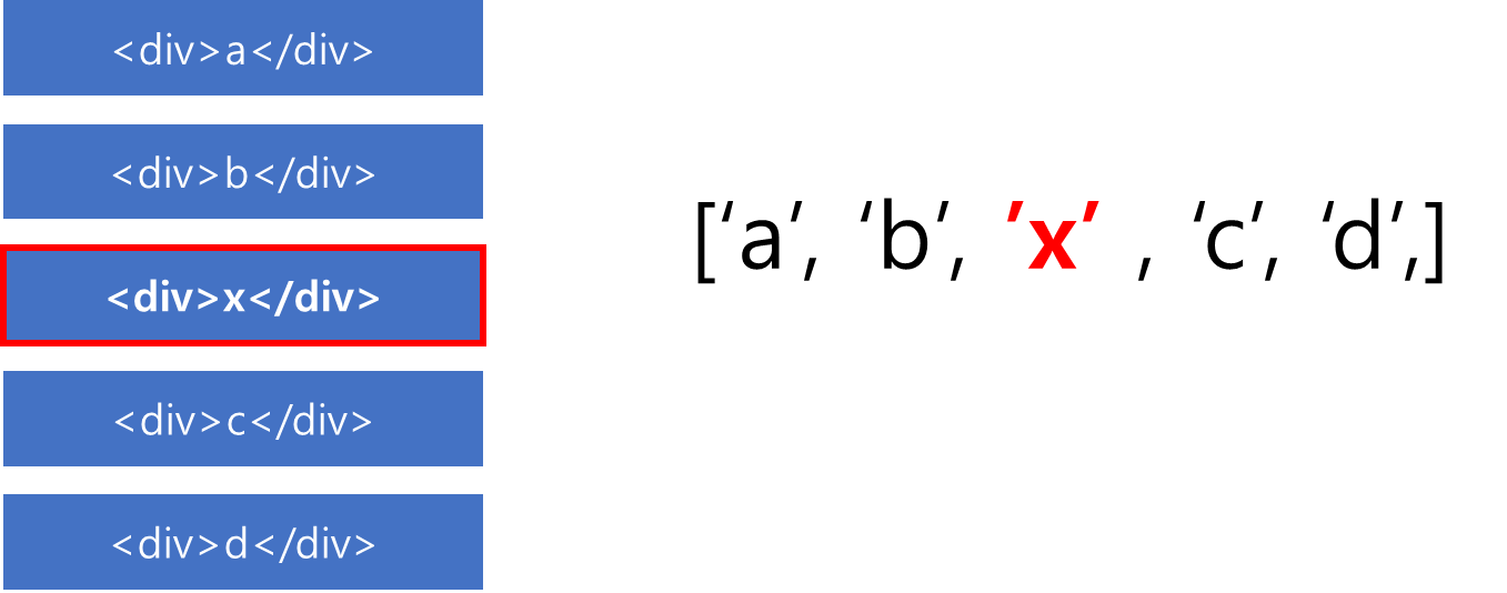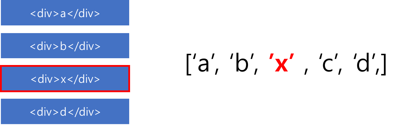 배열에 x가 삽입된다면 당연히 새로운 div 태그가 삽입될 것으로 생각한다.