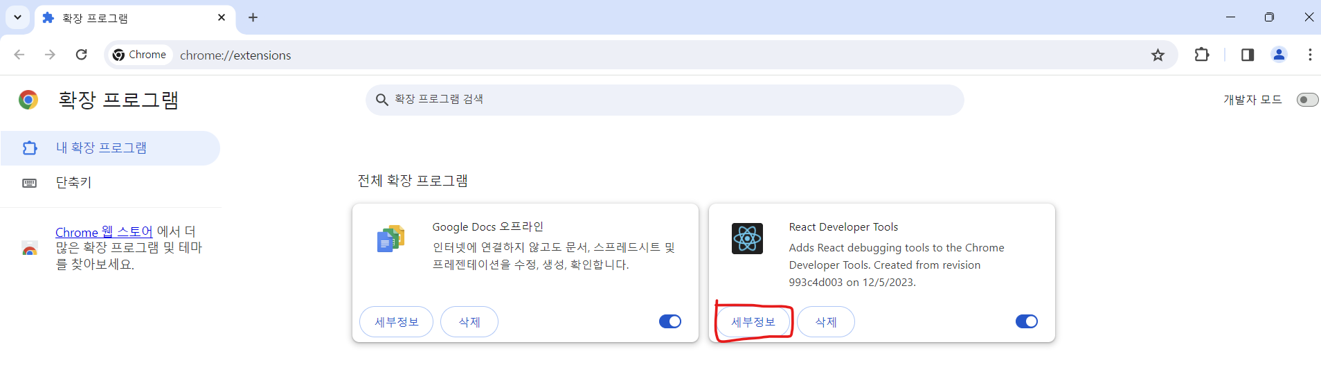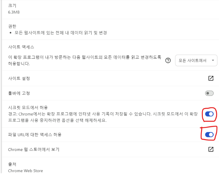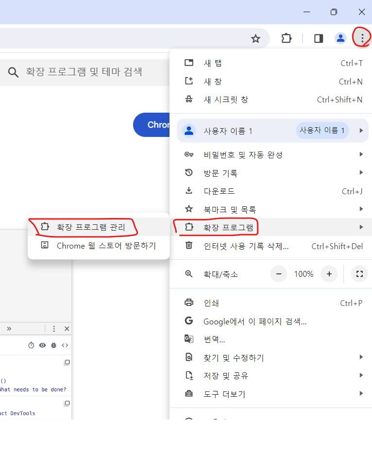 우측 메뉴 > 확장 프로그램> 확장 프로그램관리 클
