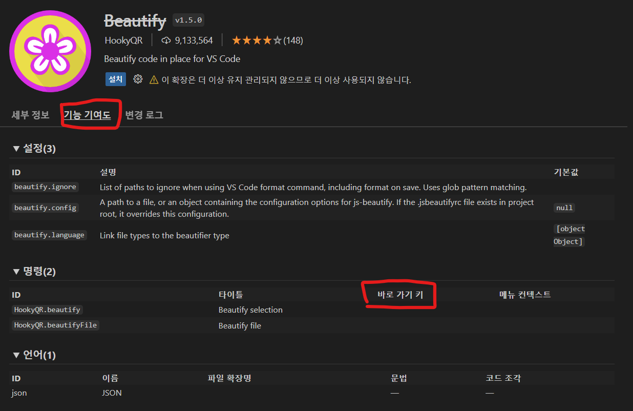 beautify 기능은 사용 가능하나 업데이트 되거나 오류로 인한 수정 보완은 없다는 뜻으로 보입니다.