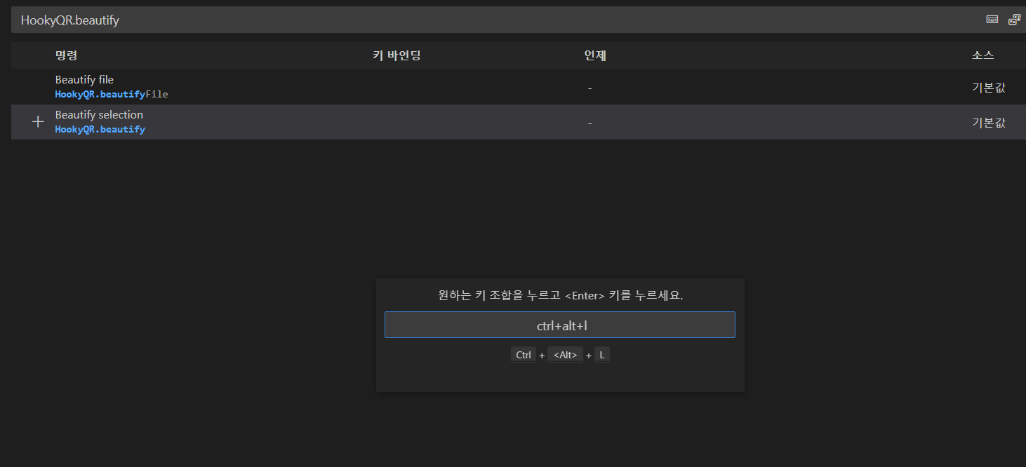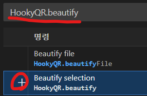 3. HookyQR.beautify 를 검색 후 beautify selection 선택 후 키 설정