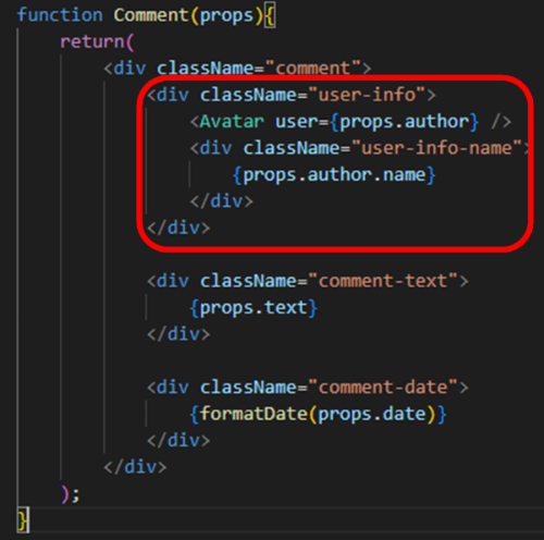 이 코드는 사용자의 정보를 담고 잇는 부분을 UserInfo라는 Component로 추출한 것이다.