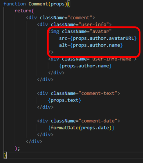 Comment Component에서는 이미지 태그를 사용하여 사용자의 프로필 이미지를 표시하고 있다.