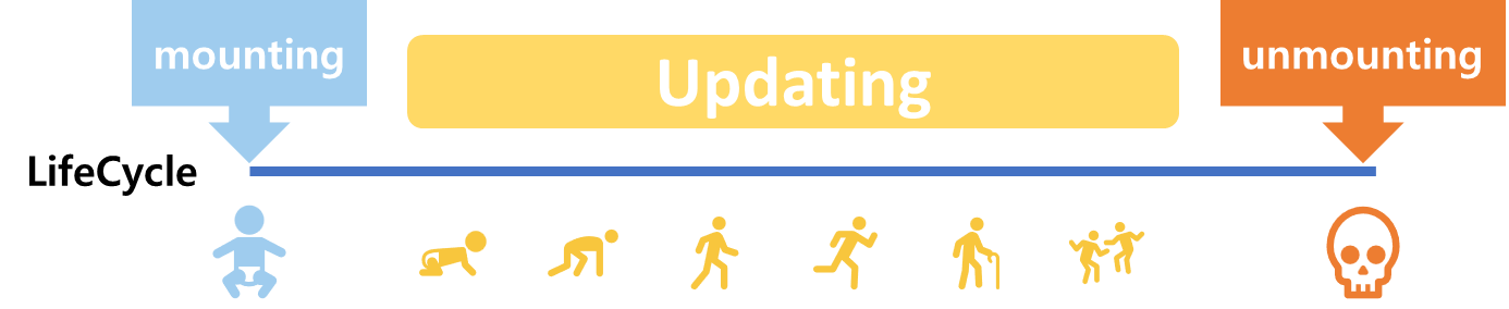 Component가 계속 존재하는 것이 아니라 시간의 흐름에 따라 생성되고 업데이트되다가 사라진다.