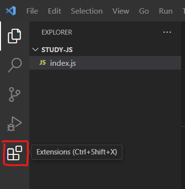 vscode에서 왼쪽 메뉴 가장 아래에 있는 Extensions 클릭 ( 또는 단축키 Ctrl + shift + X)