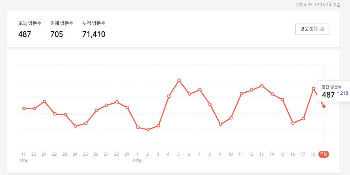 | [T-LOG] 일간 방문 수 800명 (6) | 2024.03.06 |