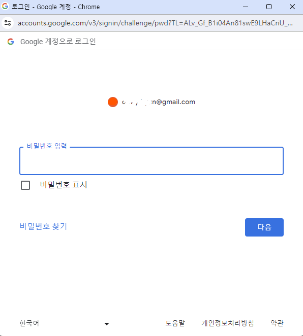 이 오류는 연결해두었던 계정 메일의 비밀번호를 변경한 적이 있다면 생기는 오류다.
