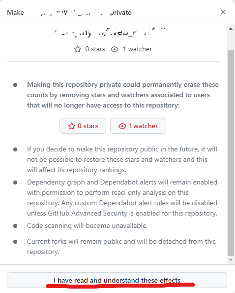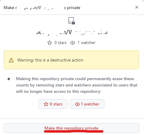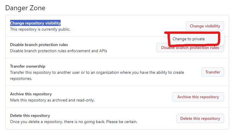 깃허브를 사용하다 공개로 해두었던 리포지토리를 비공개로 바꾸고 싶어 졌다.