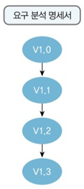 요구 분석 단계에서 생성된 요구 분석 명세서는 3개의 버전 (V1.1, V1.2, V1.3)으로 진화해왔다.