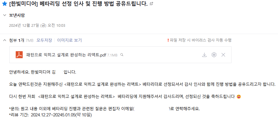 10일간의 베타리딩을 끝내고 pdf를 한빛미디어에 전달하였다.