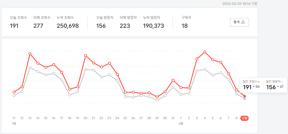 블로그 관리 홈에 변화가 생기면서 누적 조회수와 누적 방문자가 생겼다.