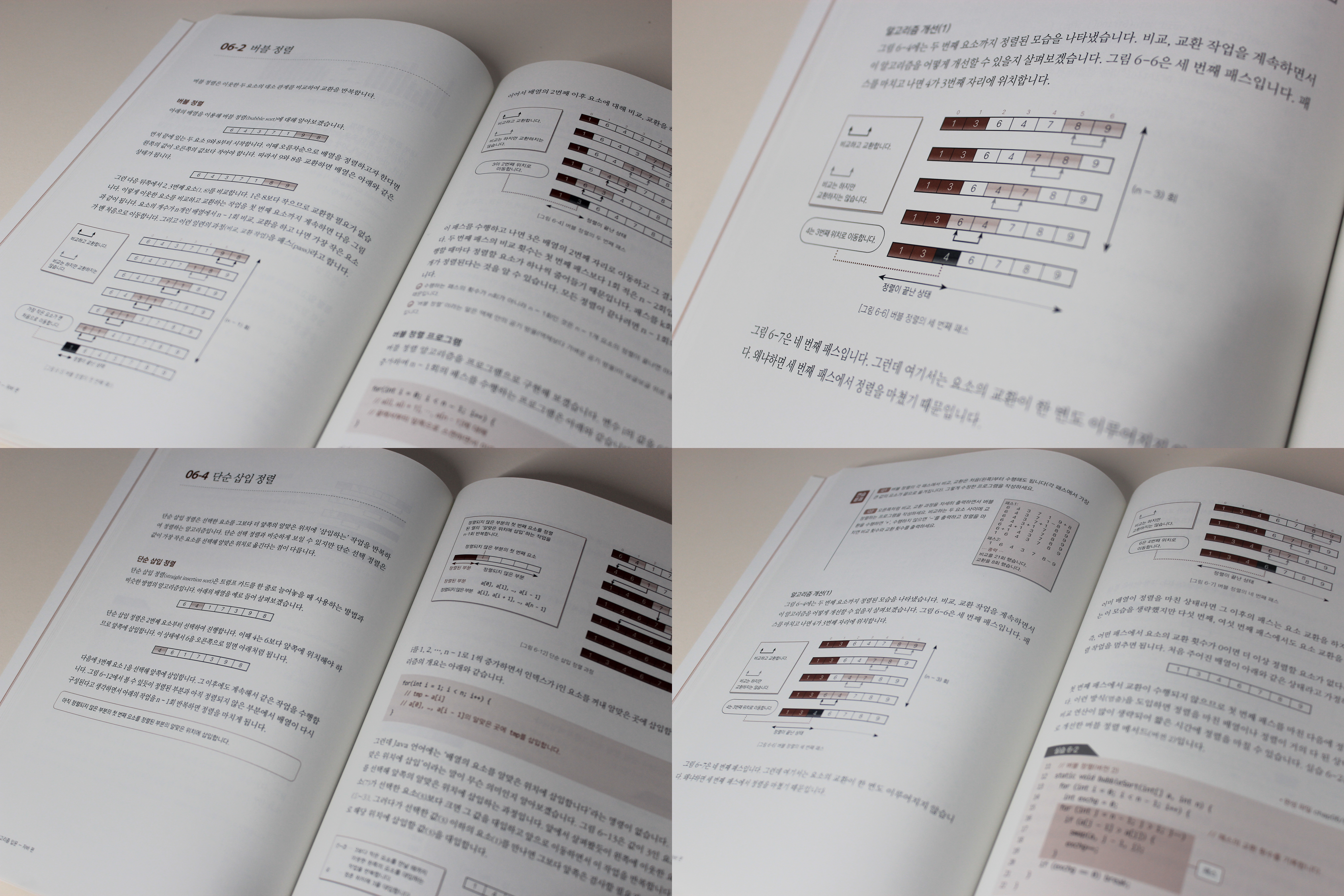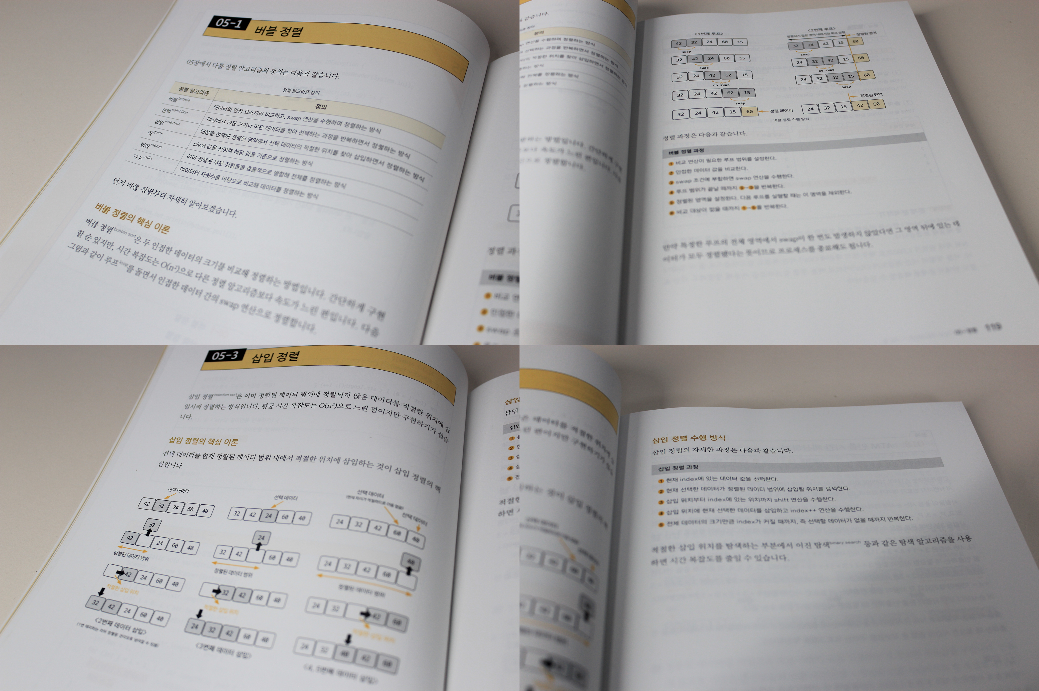이지스퍼블리싱의 알고리즘 코딩 테스트의 버블정렬, 삽입정렬 부분이다.