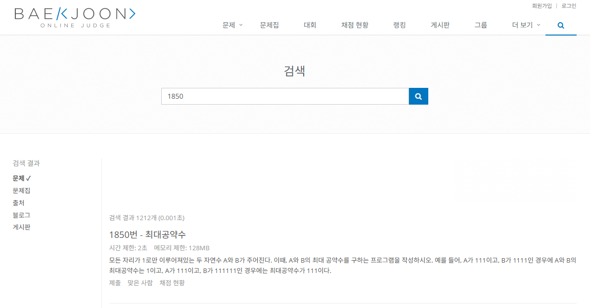 백준에서 문제 번호를 검색하면 알고리즘 문제를 직접 풀어볼 수 있다.
