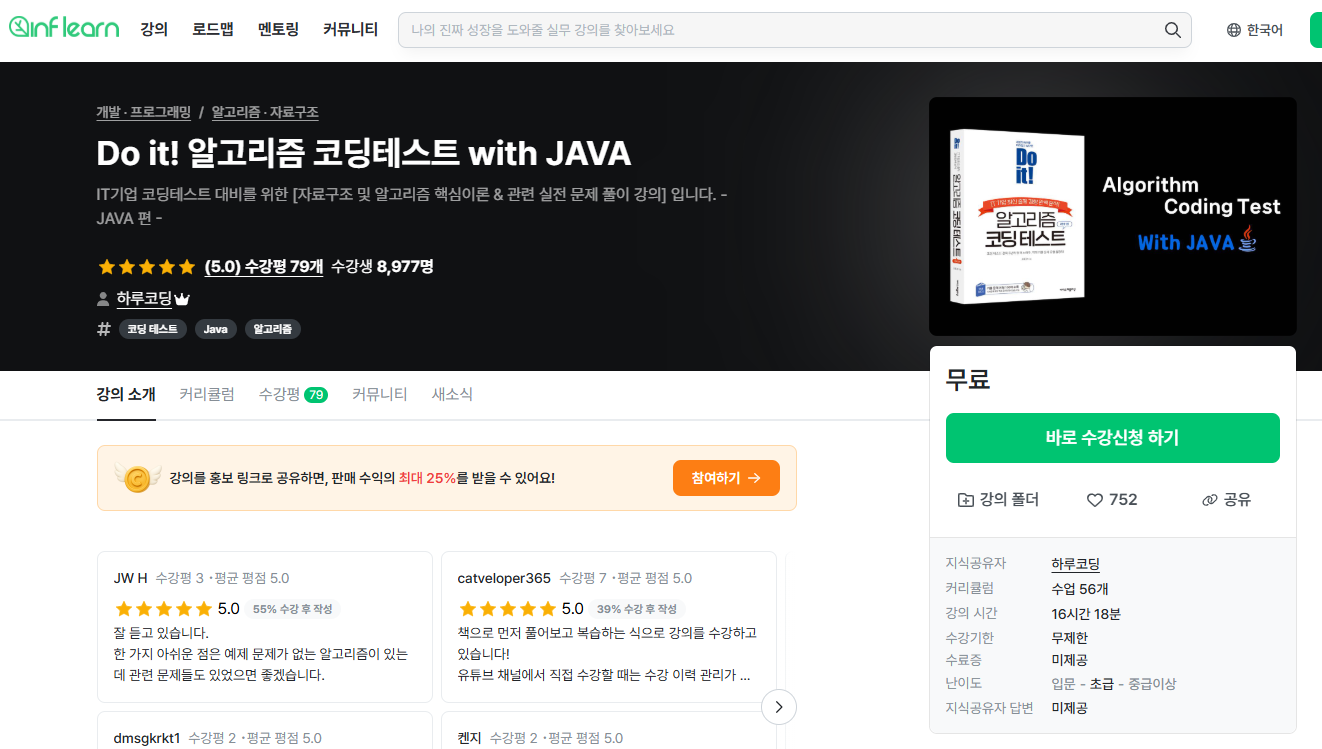 강의 : https://www.inflearn.com/course/두잇-알고리즘-코딩테스트-자바