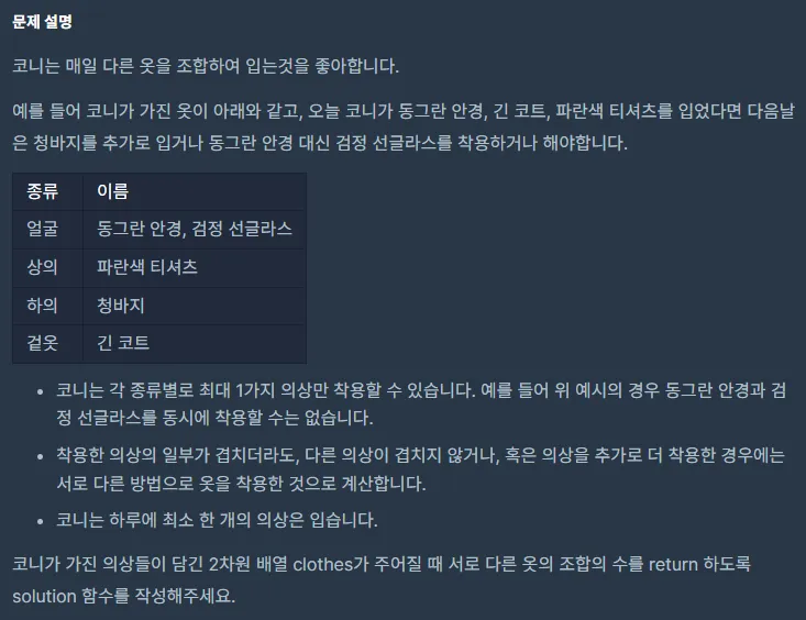 구현하면서 '아무것도 입지 않은 경우'를 빼는 부분을 놓쳐 결과가 달라지는 문제를 겪었다.