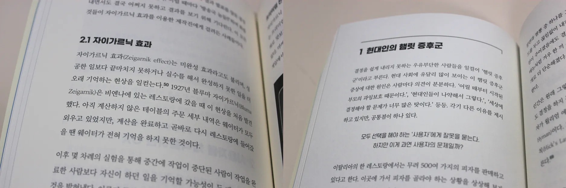 가장 좋았던 점은 단순히 '이런 UX가 있다' 하고 끝내지 않고 실제 제품의 화면을 함께 제시하며 심리학적으로 설명하는 점이었다.
