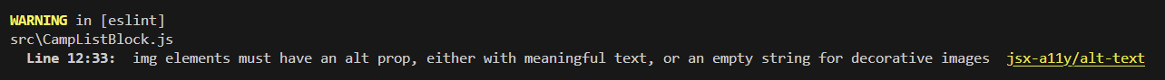 WARNING : img elements must have an alt prop, either with meaningful text,