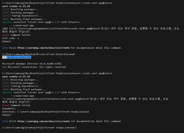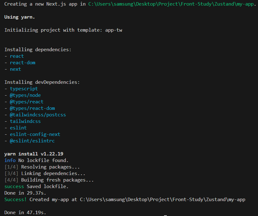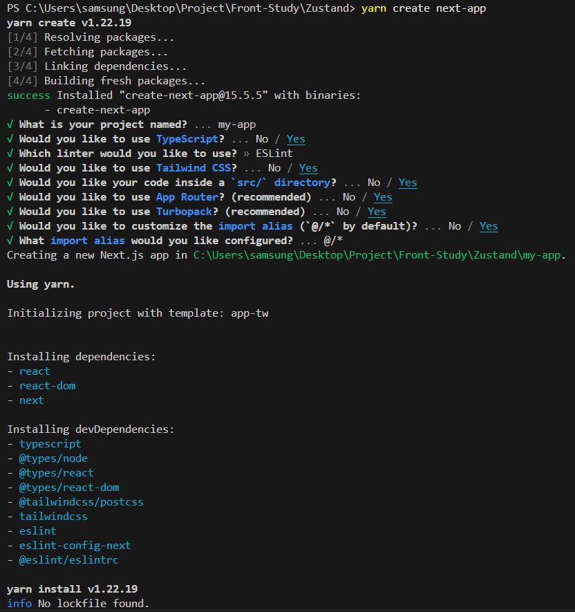 C:\Users\samsung\Desktop\Project\Front-Study\Zustand>yarn create next-app@latest