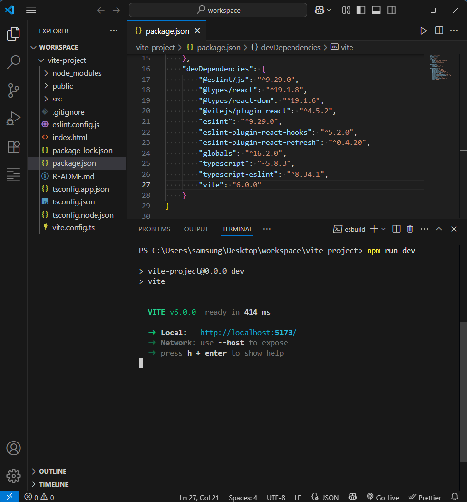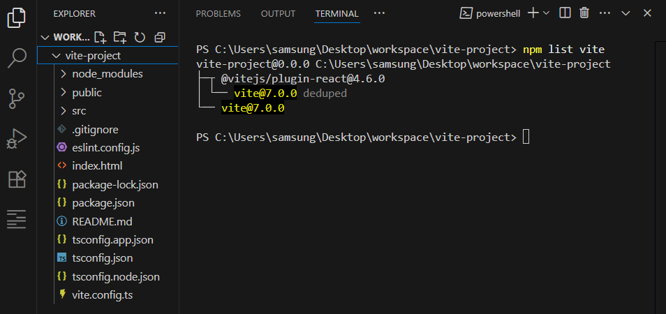 PS C:\Users\samsung\Desktop\workspace\vite-project> npm install