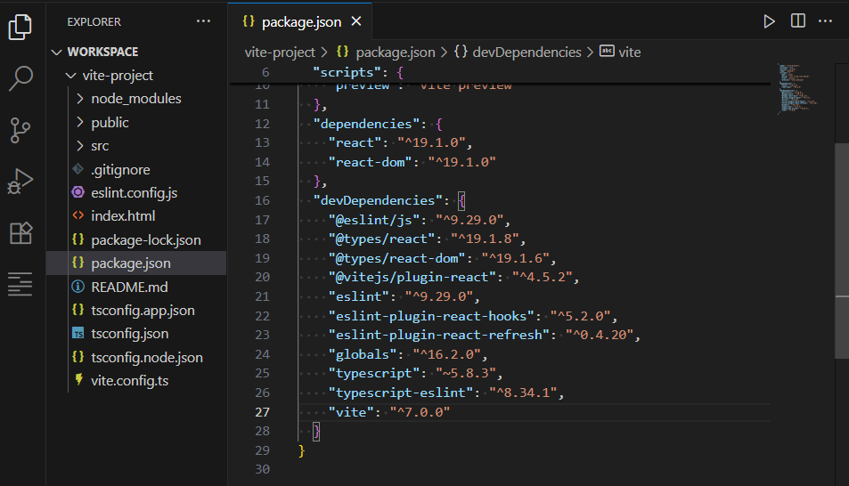이미 vite 버전이 7.0 버전이라면 vite 버전을 수정 후 저장한다.