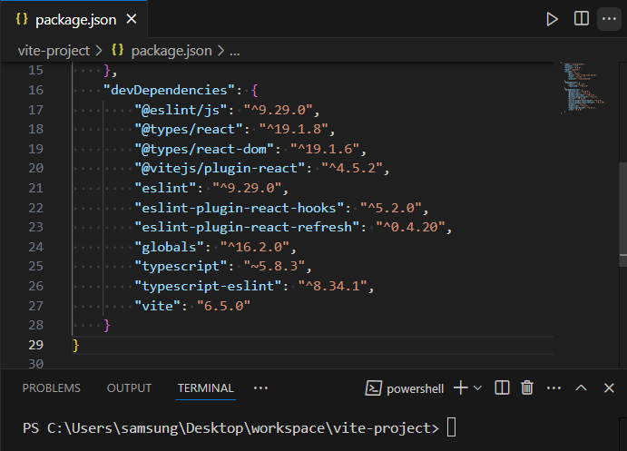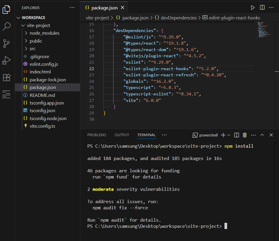 PS C:\Users\samsung\Desktop\workspace\vite-project> npm install
